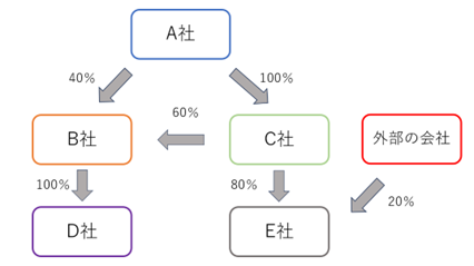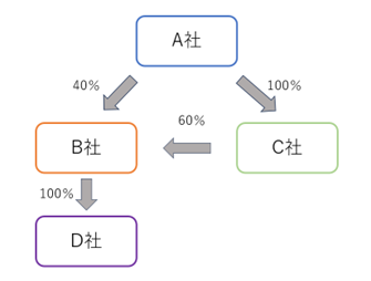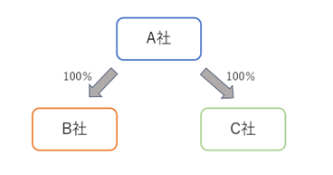 グループ法人税制の対象になる取引は、100%グループ内(完全支配関係)にある法人間の取引になります。完全支配関係とは、法人が他の法人の発行済株式等の全部を直接または間接に保有している関係のことを言います。
