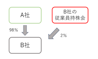 従業員持株会の株式保有割合が5%未満の場合には、その5%未満の株式を発行済株式から除外して取り扱われます。そのため、A社はB社との間には完全支配関係があると判定されることになり、グループ法人税制の対象になります。