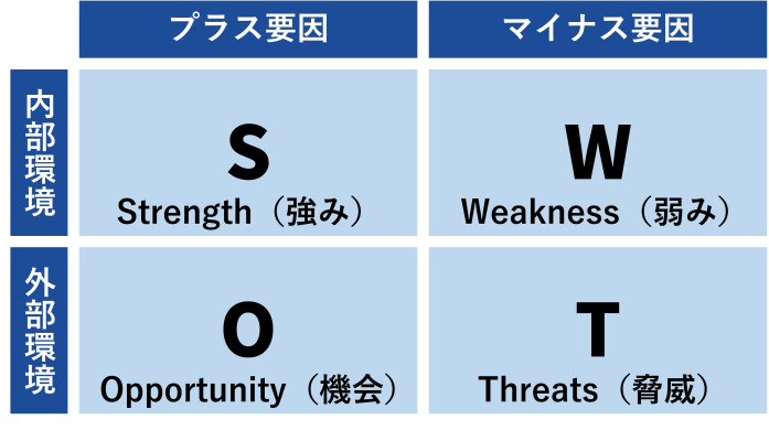 競合・市場など企業を取り巻く状況については、競合や市場などを分析した結果を記入します。たとえば、マーケティングで、よく知られた分析手法である、SWOT分析を活用すると良いでしょう。