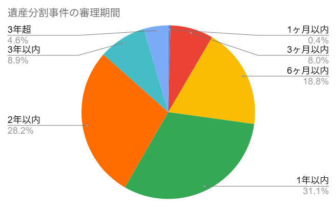 また、調停が成立するまでの期間ですが、約4分の3のケースで半年を超えており、約4割のケースで1年を超えています(下図参照)。2年以上かかることもあります。遺産分割トラブルになると、解決まで非常に時間がかかるため、生前に対策をしておくことが大切です。